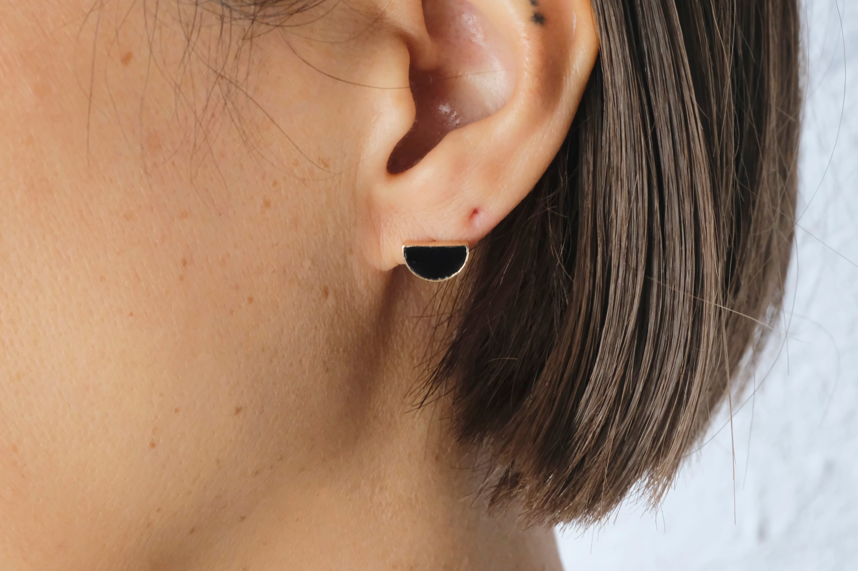 オリジナルでカットしてもらった半月タイプのオニキスをシンプルにピアスにしました。
