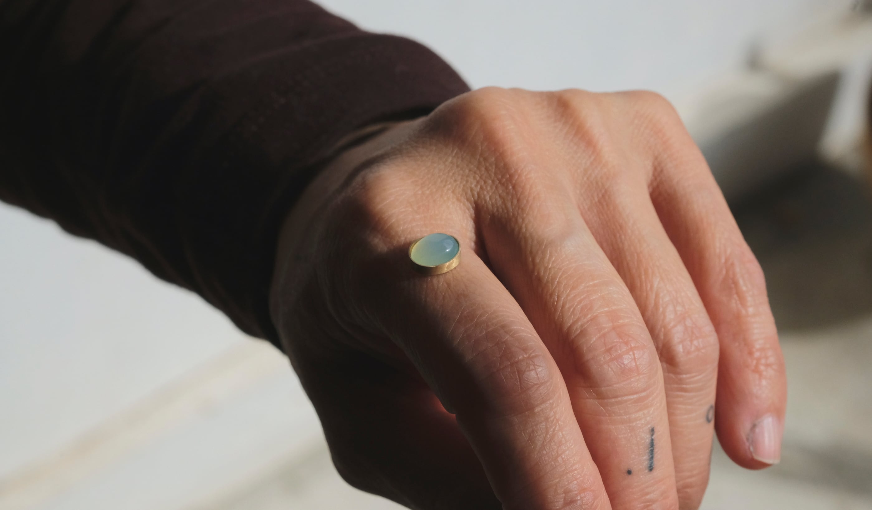 やわらかなミントグリーンの光をたたえた天然カルセドニー。