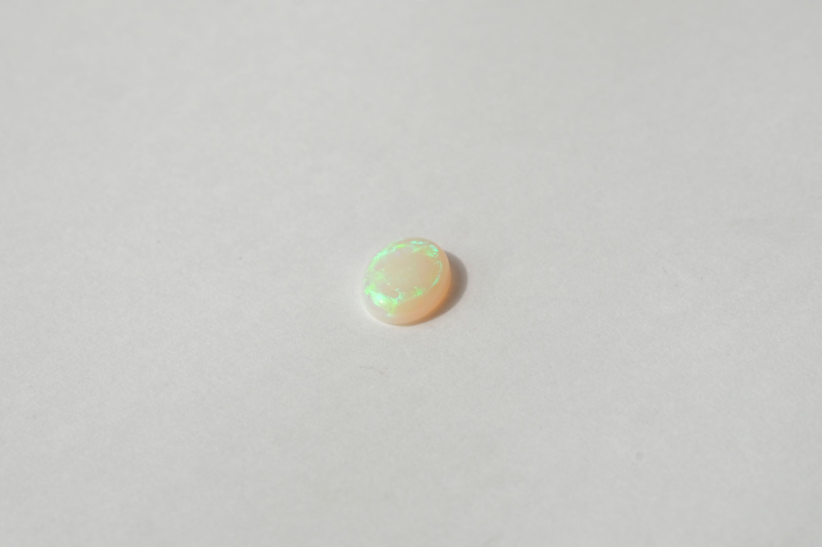 ミルキーな白からクリーム色で優しい光を内側から持つ 遊色のカボションルース。